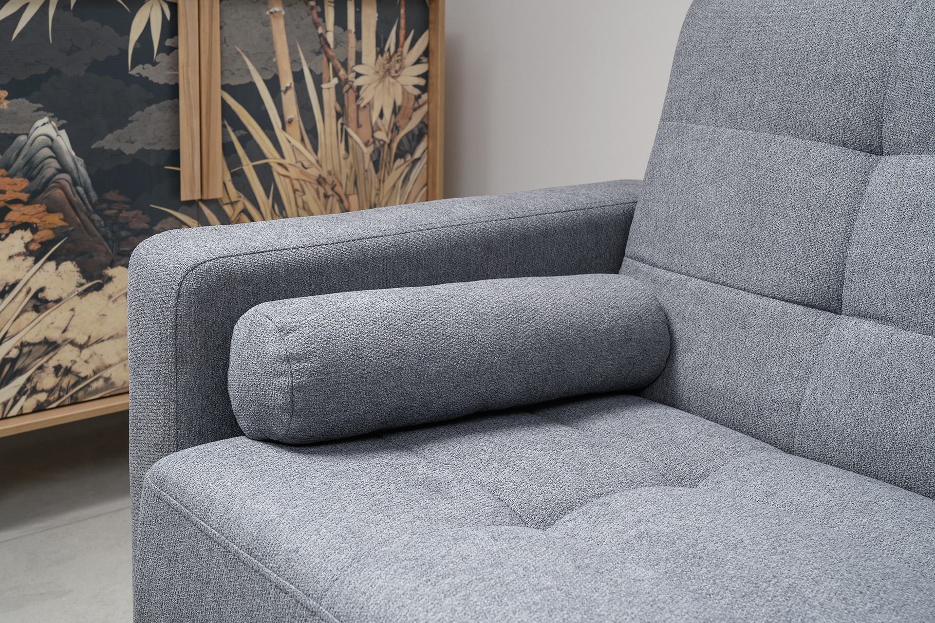 Едва заметный эффект букле на мягкой и объемной фактуре наполняет общую атмосферу интерьера теплом.