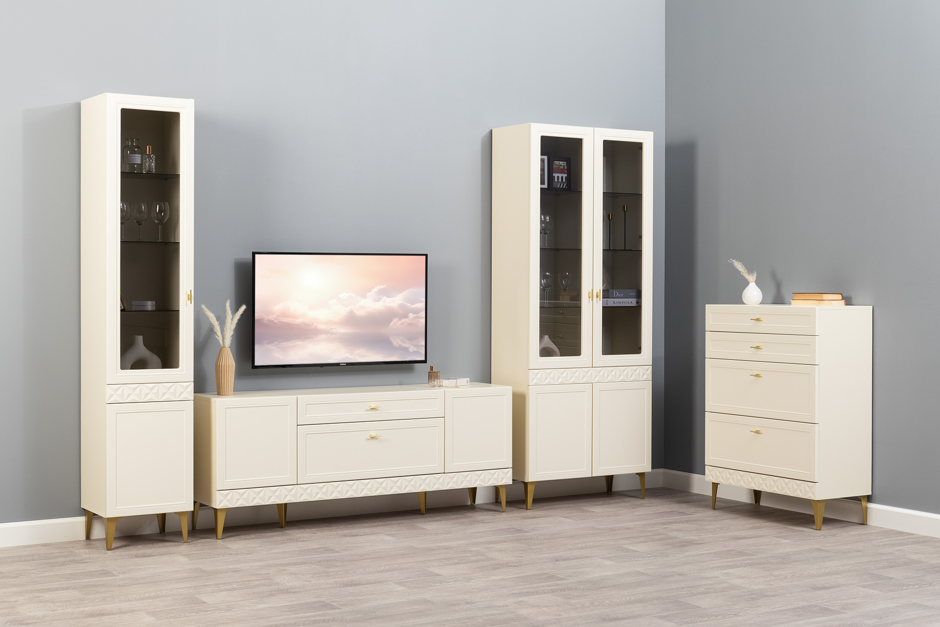Комод Марион 16.249 слоновая кость С341 PE, слоновая кость 6898 ПВХ, белый PE шагрень