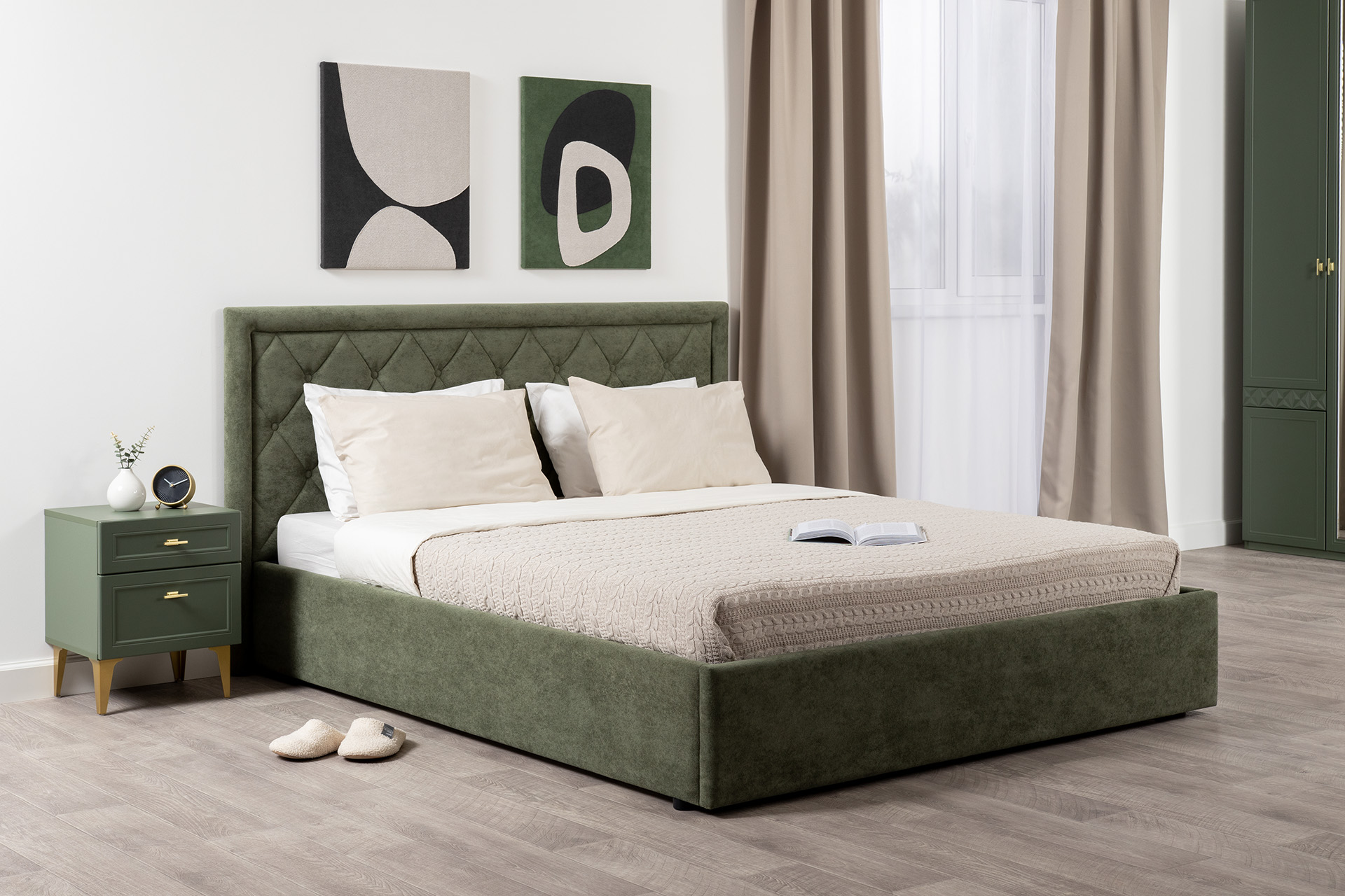 Кровать Марион 160 велюр OCEAN 012 темно-зеленый с ортопедическим основанием и подъемным механизмом (спальное место 160 х 200)