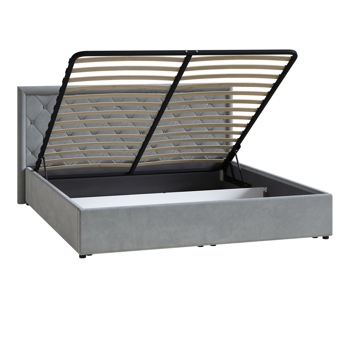 Кровать Марион 180 велюр OCEAN 023 серый с ортопедическим основанием и подъемным механизмом (спальное место 180 х 200)