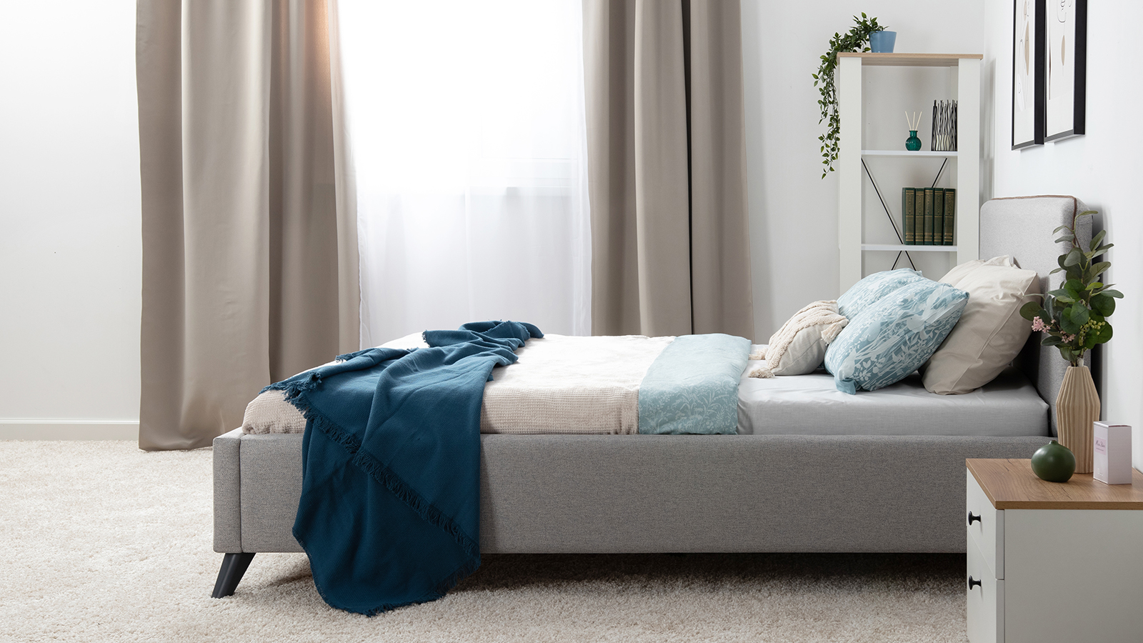 Лаконичный дизайн, гладкая и приятная на ощупь рогожка, широкий выбор пастельных оттенков, высокие опоры — модная кровать МИА порадует сторонников скандинавского стиля.