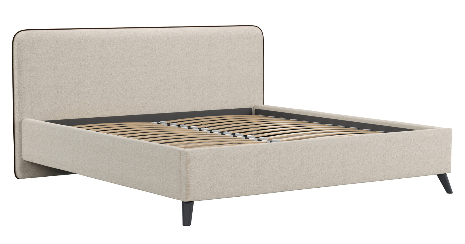 Кровать Миа 160 рогожка светло-бежевый, кант желтовато-коричневый с ортопедическим основанием и подъемным механизмом
