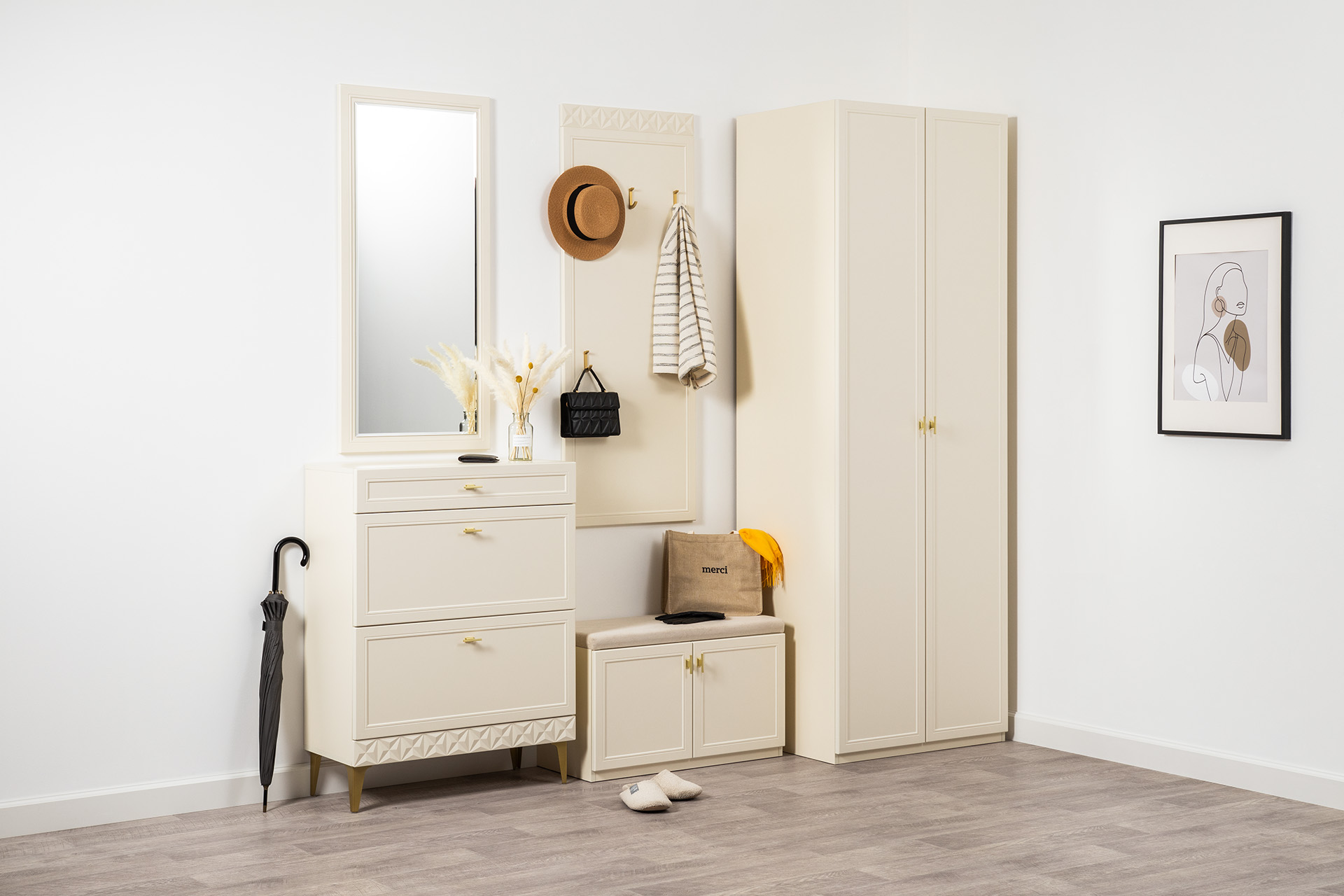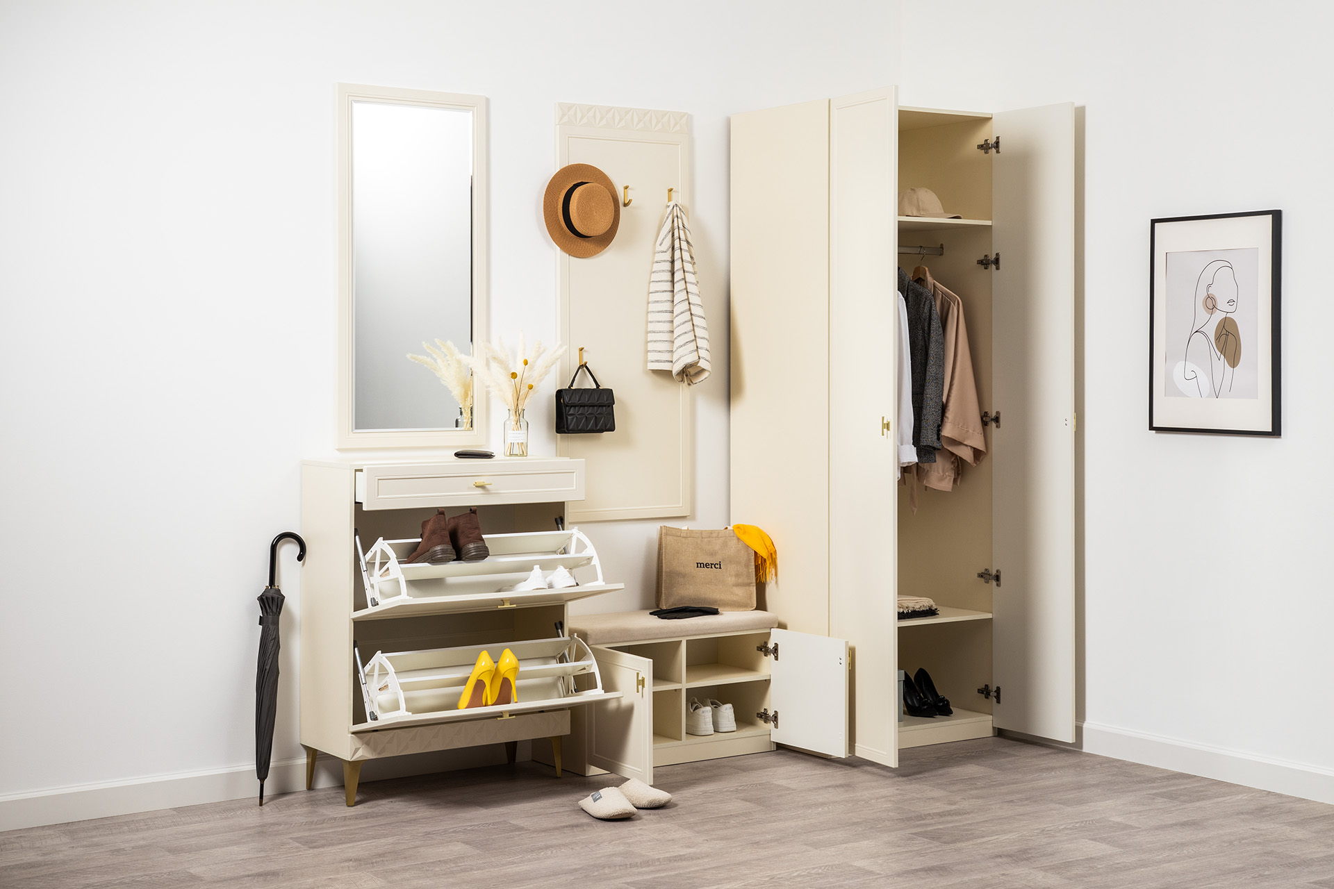 Шкаф двустворчатый Марион 16.340.02 слоновая кость С341 PE, слоновая кость 6898 ПВХ