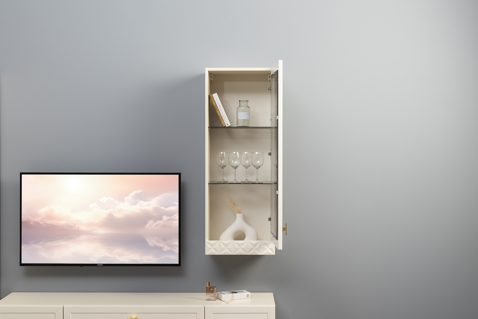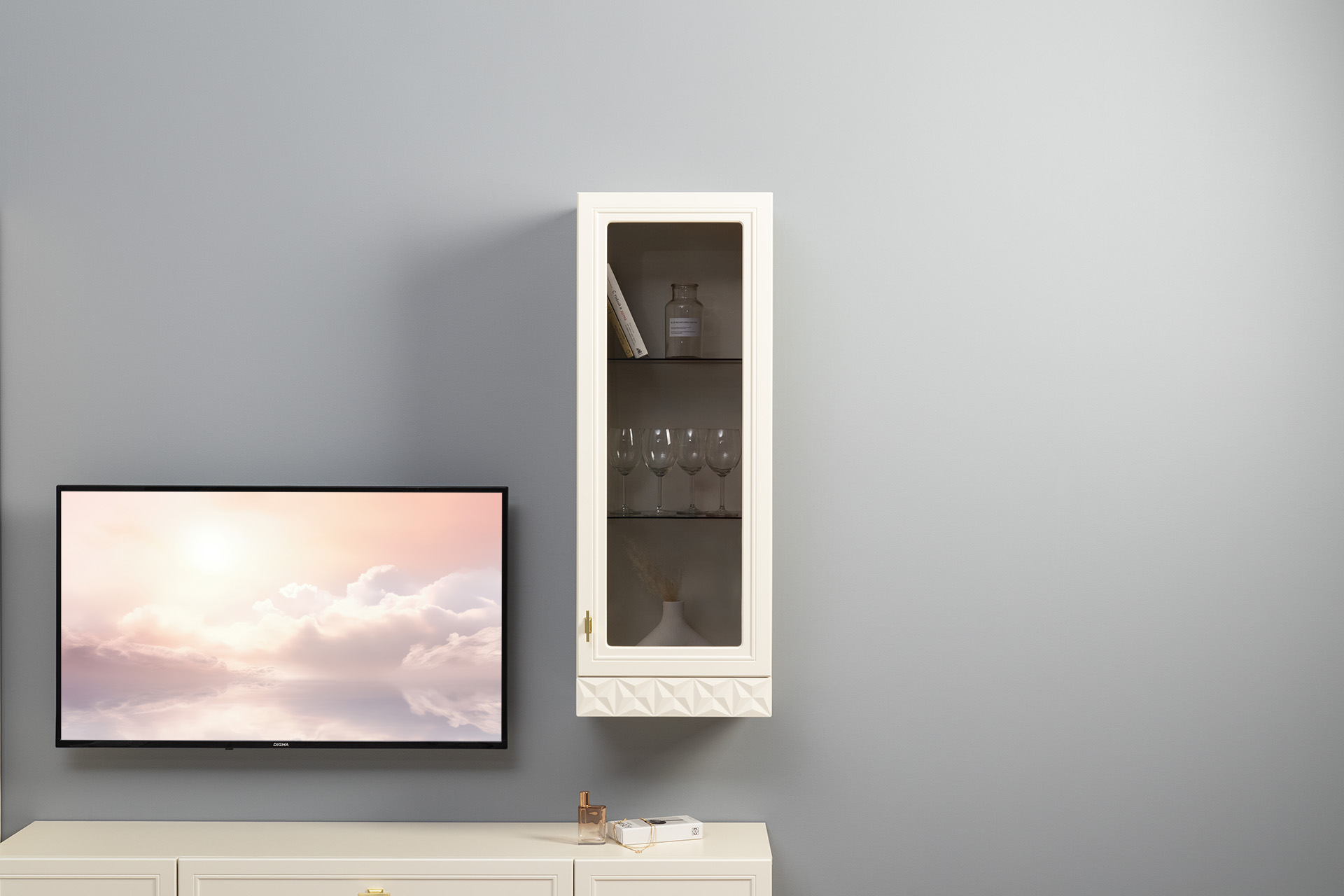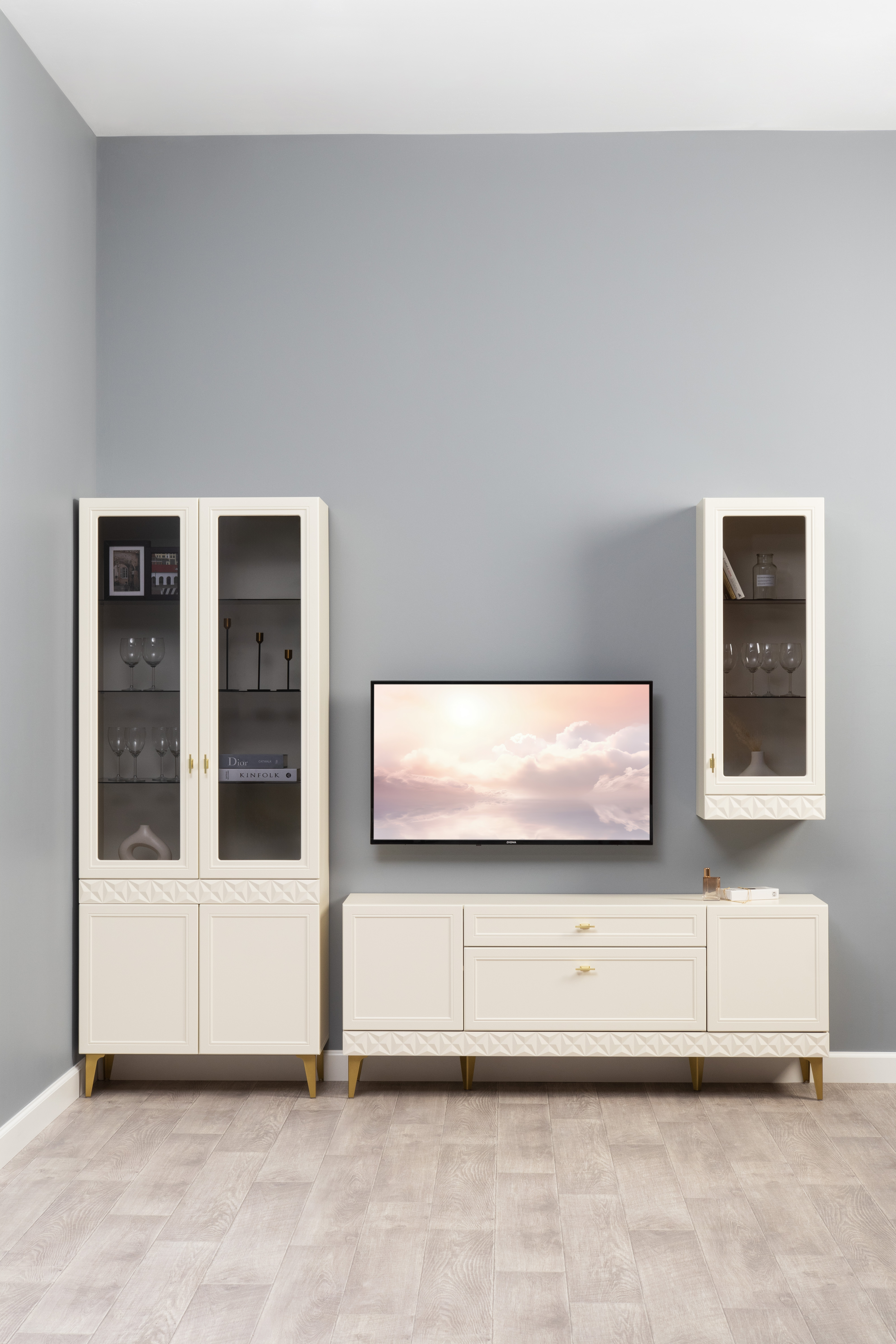 Шкаф навесной в гостиную Бэль 10.63 белый премиум, дуб золотой CRAFT