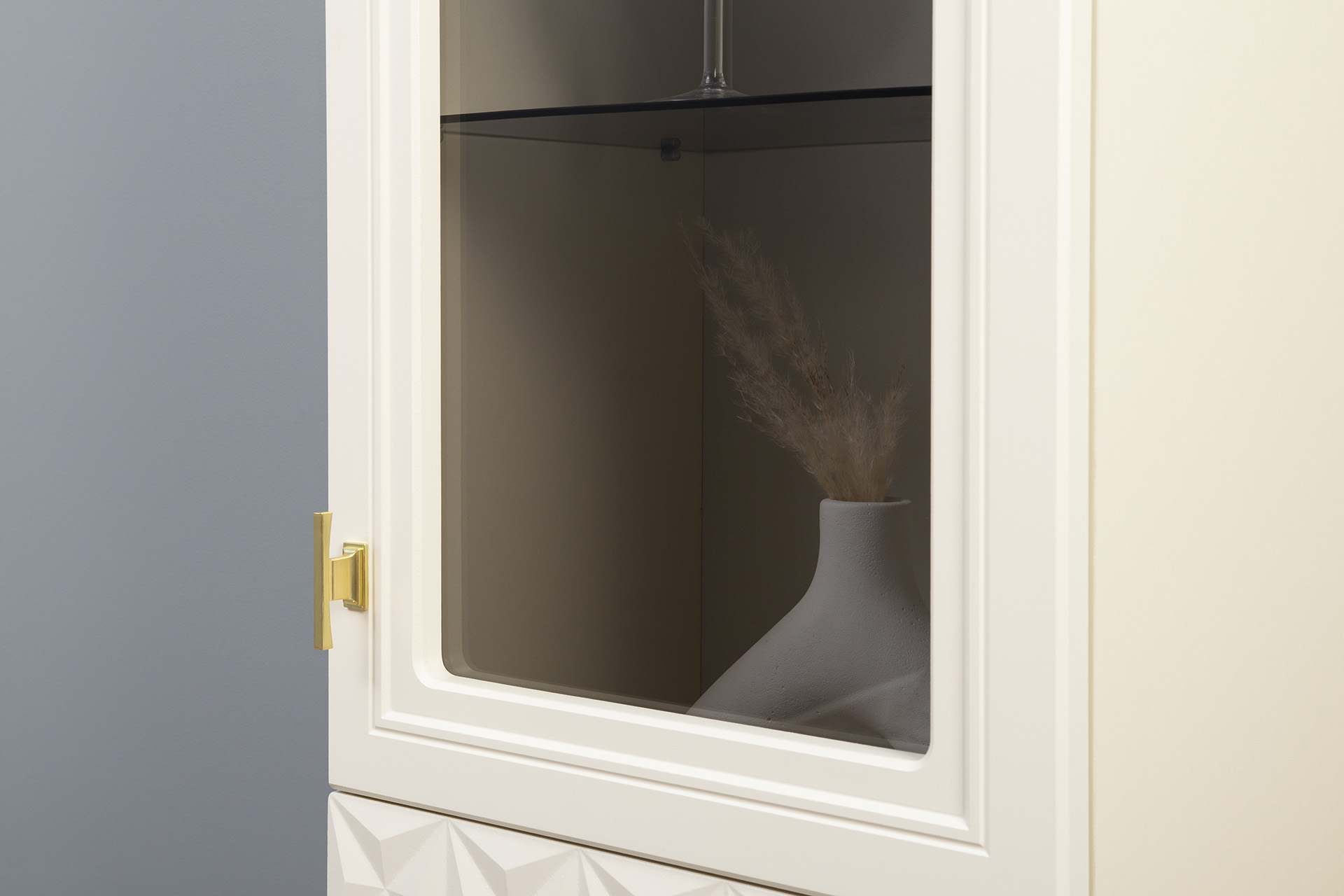 Шкаф-витрина Марион 16.397.01 слоновая кость С341 PE, слоновая кость 6898 ПВХ (собирается на любую сторону)