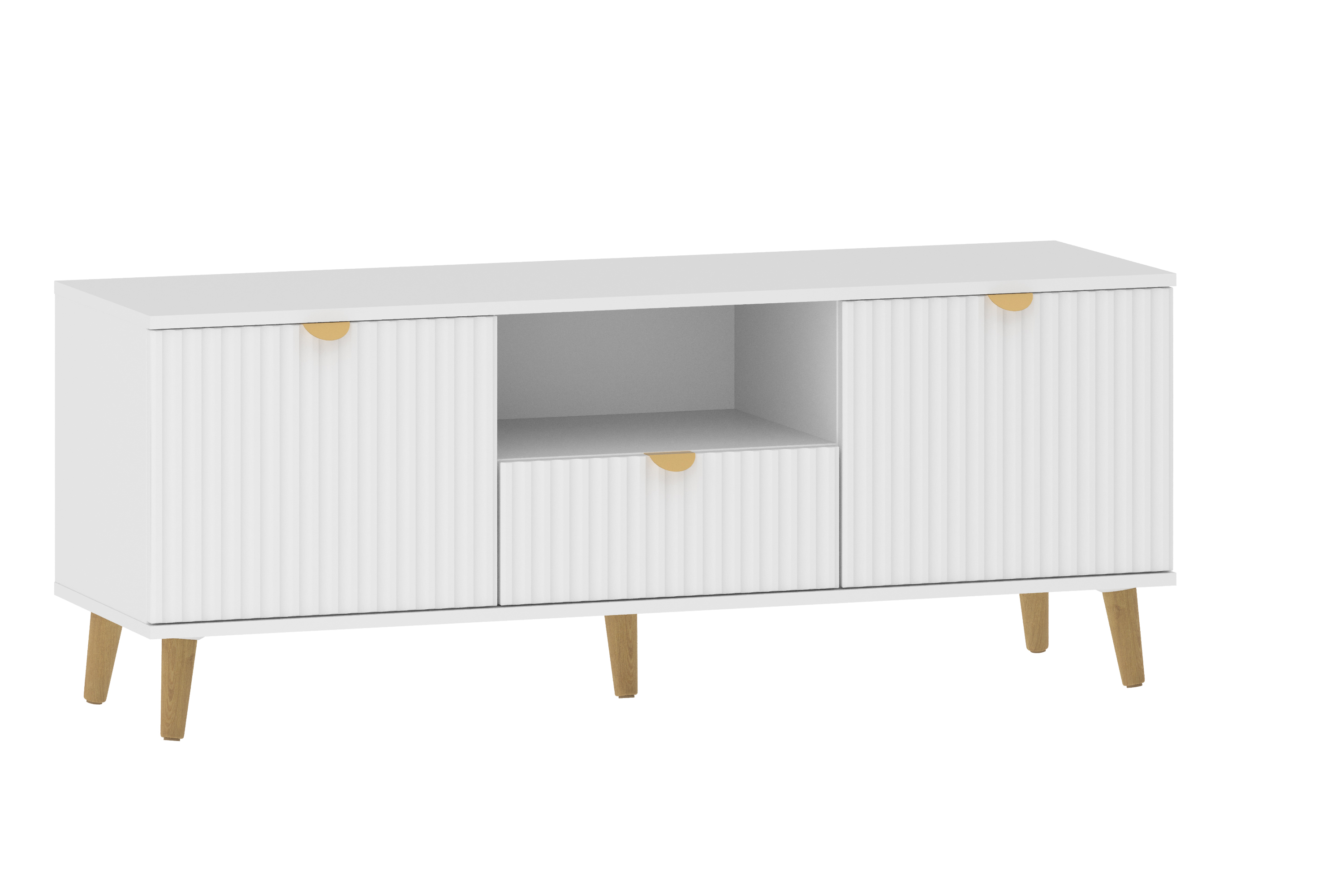 Тумба под ТВ в гостиную Бэль 10.91 белый премиум, дуб золотой CRAFT